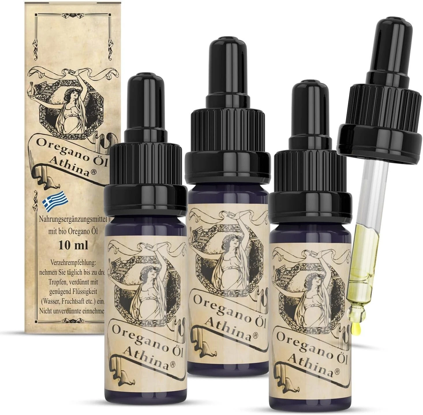 Athina® Oregano Öl, 3 x 10 ml 100% Premium ätherisches Oreganoöl, 80% Carvacrol.